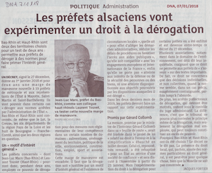 Un article des Dernières Nouvelles d’Alsace publié le 7 janvier dernier fait état d’un droit à la dérogation accordé à 19 Préfets de métropole et aux représentants de l’Etat de Mayotte, Saint-Martin et Saint-Barthélemy. Ce droit à la dérogation est une innovation juridique pavée de vertueuses intentions qui nous fait hardiment régresser vers une vision du droit révolue et frappée d’opacité.