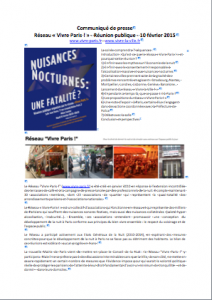 Les Réseaux « Vivre Paris ! » et « Vivre la Ville ! » publient un communiqué de presse à la veille de la réunion publique du 10 février.